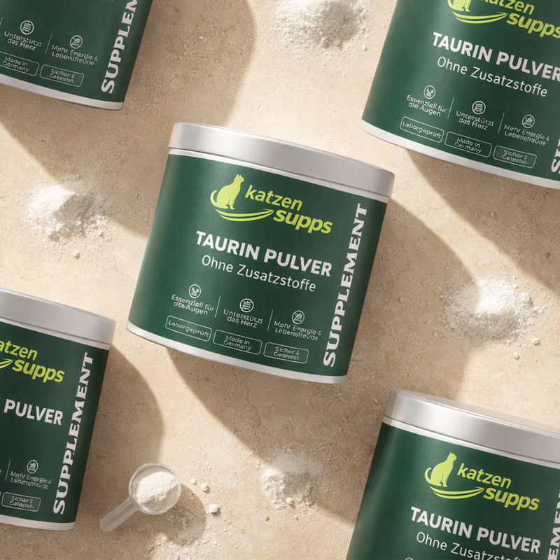 Taurin ist für Katzen ein essenzieller Nährstoff, den sie nur begrenzt selbst bilden können – deshalb muss genug davon über Futter oder Supplement rein. Es unterstützt vor allem Herz und Augen (Herzmuskelfunktion und Netzhaut/Sehkraft) und ist außerdem an der Fettverdauung beteiligt, weil es Gallensäuren unterstützt. Wenn der Körper dadurch Energie und Nährstoffe besser verwerten kann, wirkt die Katze im Alltag oft wacher, aktiver und insgesamt vitaler.